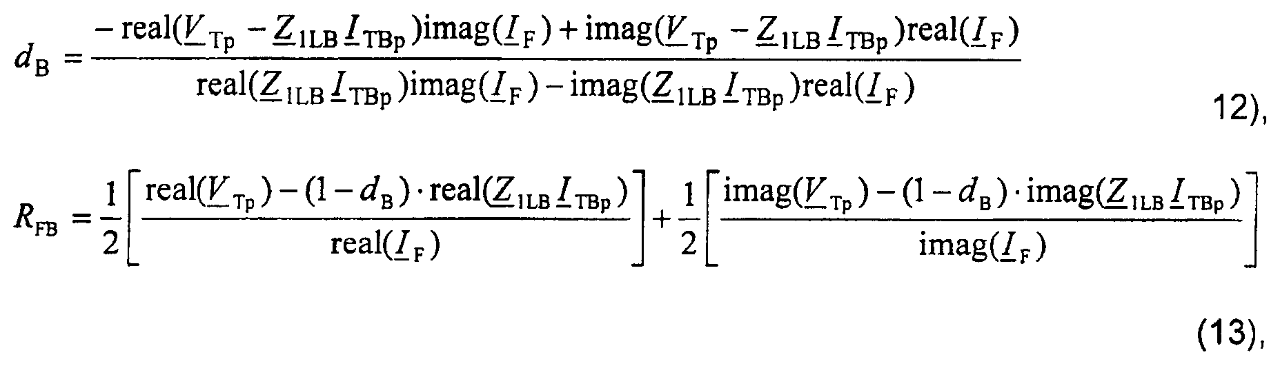 где нижний индекс i принимает значения i=2 для отрицательной последовательной составляющей, i= 1 для инкрементной положительной последовательной составляющей; dB – обозначает расстояние от конца линии до точки повреждения; ZiLB – обозначает импеданс участка LB линии для отрицательной последовательной составляющей и/или для положительной последовательной составляющей, где Z 1LB=Z1LB; Z 1LB – обозначает импеданс участка LB линии для положительной последовательной составляющей;
