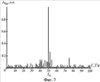 На фиг.7 приведена амплитудно-частотная характеристика тока одной из фаз статора асинхронного двигателя.