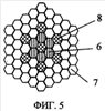 На Фиг.5 показан поперечный разрез фотонно-кристаллического волокна, состоящего из шести световодов с брегговской структурой.