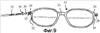 На каждой из фиг.6 и 7 схематически показано соединение несущего элемента 1 с очковыми линзами 7, на фиг.6 – вид с внутренней стороны линзы и на фиг.7 – вид из противоположного положения. Пунктиром показана соединительная часть 8, надетая или надвинутая. Линза 7 содержит отверстие 5′, предназначенное для удерживания резьбового штифта 5, и открытое краевое отверстие 6′, предназначенное для удерживания установочного штифта 6.