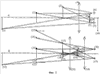 На фиг.3 представлена камера в двух поперечных сечениях. Заметим, что длина линз и щелей здесь намного превышает высоту. Виден ряд обтюраторов 1, расположенных между линзами 2 и 3. Линза 4 с двигателем 6 служит для фокусирования. Видна пластина 5 для получения изображения.