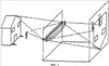Если мы теперь переместимся в часть В, то увидим изображение, полученное, когда зритель 16 и 17 смотрит на проектор изображения. Видны две линзы 21 и 14. В точке 18 ясное изображение образуется на экране 15. Оно является тем изображением, которое создается с помощью передачи информации с пластины 5. Линза 21 создает действительное инвертированное изображение. С помощью линзы 14 создается мнимое изображение для зрителей 16 и 17 с помощью распространения лучей между 14 и 17. Мы видим мнимое изображение 18 в точке 11, которое в свою очередь соответствует действительному объекту 1. Другие точки, которые показываются в 15, создают действительное изображение с помощью линзы 21 на 20 и 19. Эти изображения являются двойными и не одновременными, и с помощью линзы 14 они дают мнимые изображения на плоскости, на которой изображением является 11. Изображение на 23 появляется, когда обтюратор, соответствующий зрителю 17, открыт; таким образом, изображение на 25 появляется, когда открывается обтюратор для зрителя 16. Визуальным впечатлением зрителя с глазами 16 и 17 является то, что 23 и 25 являются восприятием 13 из двух точек вида.