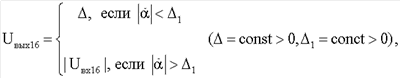 Поскольку первый положительный и второй отрицательный входы сумматора 12 имеют единичные коэффициенты усиления, а интегратор 13 имеет коэффициент усиления Кэм, то на выходе выпрямителя 18 формируется сигнал Выпрямитель 16 и релейный элемент 17 имеют следующие выходные характеристики: