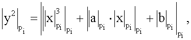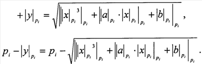 где y и х – координаты симметричных точек кривой Р(х, y) и -Р(х, -y) (фиг.3), a,b F(p) – параметры кривой и являются ключом шифрования, F(p) 2, 3 – конечное поле.