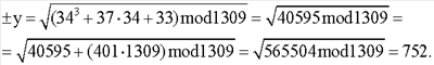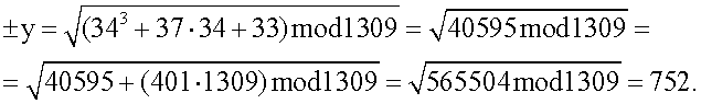 где a=37, b=33, F(q)=1309, сообщение 1000102=3410.