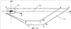 На фиг.1a показано вертикальное сечение зон в случае снижения Отрезок АВ в точке касания к ЗС, противоположной направлению движения, имеет наклон, равный углу наклона прогнозируемого снижения. В случае неблагоприятных погодных условий или плохой видимости угол наклона АВ увеличивают на несколько градусов. Проекция отрезка АВ на ось Ох равна величине снижения с прогнозируемой скоростью за заданное время t1. Второй участок ВС расположен горизонтально, его длина складывается из суммы диаметра ЗС 2rc и произведения прогнозируемой путевой скорости на время t2. Отрезок CD имеет наклон М и оканчивается в точке D – точке пересечения CD с верхней границей ЗУ, и определяет протяженность ЗУ. Отрезок прямой ED, являющийся верхней границей ЗУ, начинается в верхней точке касания к ЗС, противоположной направлению движения, и расположен горизонтально.