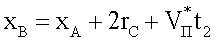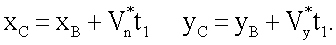 На фиг.2г ЛА имеет значительную скорость набора высоты. В этом случае отрезок АВ вычисляют по формулам