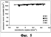 Эти примеры были выполнены с каждым из порошков диоксида урана UO2 (или смеси порошков), синтезированых “мокрым” способом (порошки VH1, VH2 и VH3) (каждый из этих порошков синтезирован так называемым процессом ADU (из диураната аммония с формулой U2O7(NH4)2)), как раскрыто, например, в патенте США 6235223, но каждый из порошков получен на трех разных установках с различными технологическими параметрами, таким образом, объясняя различие в характеристиках; порошок VS1 получен “сухим” способом. Порошки VH1, VH2 и VH3 и VS1 имеют схожие удельные площади поверхности 3,8 м2/г, 3,0 м2/г, 3,3 м2/г и 2,1 м2/г соответственно. ДДП-материалы, полученные согласно настоящему изобретению из порошков VH1, VH2 и VH3 и VS1, имели удельную площадь поверхности 4,2 м2/г 3,7 м2/г, 4,2 м2/г и 2,6 м2/г соответственно. Небольшой рост в наблюдаемых удельных площадях поверхности, при переходе от порошков к ДДП-материалам, полученным из этих порошков, в общем, происходил из-за образования поверхностей в результате разрушения агрегатов и агломератов. Это также имеет место при переходе от смеси порошков к смеси ДДП-материалов, полученных из этой смеси. Во всех примерах каждая точка на графике представляет собой среднее из шести полностью идентичных образцов.