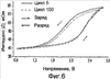 Как показано на Фигуре 9, потенциалы электродов конденсатора при заряде и разряде меняются в широком диапазоне. Исходя из приведенной на Фигуре 10 кривой зависимости импеданса от напряжения окислительно-восстановительные процессы, связанные с проводящей основой коллекторов тока, несмотря на жесткий режим циклирования не наблюдались. Это свидетельствует о том, что нанесенный в виде покрытия на проводящую основу защитный слой каждого коллектора тока эффективно работает на предотвращение окисления проводящей основы. Это подтверждалось измерением электрических характеристик коллекторов тока после циклирования симметричного конденсатора 65. В дополнение к этому электрические, механические, химические и физические характеристики коллекторов тока после испытания не изменялись.