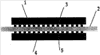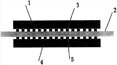 Полученная таким образом структура для детектора инфракрасного излучения схематически представлена на чертеже, где 1 – слой регистрации инфракрасного излучения, 2 – слой преобразования сигнала в электрические импульсы, 3 – множество микроконтактов, соединяющих элементы интегральной микросхемы слоя преобразования сигнала в электрические импульсы с элементами слоя регистрации инфракрасного излучения, 4 – подложка, изготовленная по технологии изготовления слоя регистрации инфракрасного излучения, 5 – множество микросоединений, выполненных на подложке идентично микроконтактам.