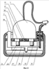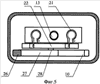 На фиг.5 – розетка сохраняющего штепсельного соединения с устройством открытия контактных гнезд в состоянии готовности к подсоединению вилки, вид сверху с разрезом.