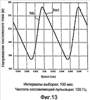 Фиг. 13 показывает соотношение между значениями Vest оценки напряжения постоянного тока, предоставляемыми посредством средства 5b оценки обнаруженного значения напряжения постоянного тока четвертого варианта осуществления, и фактической формой Vdc сигнала напряжения постоянного тока, при этом фактическая форма Vdc сигнала напряжения постоянного тока по фиг. 13 – это форма сигнала напряжения постоянного тока, определенная, когда напряжение постоянного тока получается посредством выпрямления напряжения источника переменного тока посредством однофазной схемы диодного выпрямления. Как очевидно из формы сигнала напряжения постоянного тока по фиг. 13, составляющая пульсации напряжения постоянного тока, получаемого из однофазной схемы диодного выпрямления, не показывает синусоидальную волну, но во многом похожа на пилообразную волну, и частота составляющей пульсации становится двойной частотой напряжения питания. Следовательно, в случае однофазного источника питания на 60 Гц, составляющая пульсации имеет частоту 120 Гц. На фиг. 13 показан результат работы средства 5b оценки обнаруженного значения напряжения постоянного тока, полученный с интервалами выборки периода T, установленного при 100 мкс.