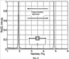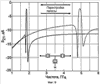 Как показано в статье [S. Gevorgian, A. Vorobiev, Т. Lewin, «DC field and temperature dependent acoustic resonances in parallel-plate capacitors based on SrTiO3 and Ba0,25Sr0,75TiO3 films: Experiment and modeling», J. Appl. Phys. 99, 124112, 2006], электрический отклик акустического резонатора с сегнетоэлектрической пленкой на СВЧ сигнал проявляется в виде аномальной зависимости электрического импедаиса (Z) от частоты в области собственного акустического резонанса. Для примера, на фиг.8 показана частотная зависимость вещественной части электрического импеданса и возможная перестройка частоты для указанной выше конкретной структуры на основе двух слоев титаната бария-стронция.