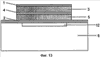 На фиг.13 представлен пример выполнения акустического резонатора с выполненным между внешним электродом и подложкой воздушным зазором 12. В этом случае также отсутствует отток энергии в подложку. Подобные структуры изготовляются на полупроводниковых подложках с использованием методов селективного травления. Достоинством является возможность изготовления резонаторов на полупроводниковой (например, кремниевой) подложке и объединения их с другими электронными компонентами, изготовленными на этой же подложке.