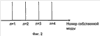 В структуре с двумя сегнетоэлектрическими слоями, имеющими пьезомодули разных знаков (фиг.6), уже нечетные моды являются непьезоэлектрическими, т.к. вследствие разных знаков у пьезомодулей смещения внешних границ происходят в одном направлении. Для четных мод происходит изменение линейных размеров структуры. Т.е. в случае противоположных направлений постоянного электрического поля в слоях сегнетоэлектрика происходит возбуждение только четных мод.