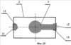 На фиг.2б показан частный случай топологии пятен возженного серебра 13 на плоскости пьезоэлемента и на его торцевых поверхностях 12.