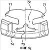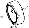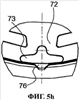 Корпус 7 клапана имеет по существу такую же основную форму, что и седло 6 клапана, т.е. имеет круглую, по существу плоскую мембрану 70, окруженную внешним цилиндрическим кожухом 75. Мембрана 70, однако, может иметь выпуклости на наружной поверхности, обращенной от седла 6 клапана. Мембрана 70 имеет ослабленные участки 74. Ослабление достигается, с одной стороны, за счет меньшей толщины материала на участках 74, как видно на фиг.5а. С другой стороны, имеются компактные отверстия 73. Участки меньшей толщины, или ослабленные участки 74 в виде выемок, предпочтительно имеют непрерывно увеличивающийся по толщине переход к остальной части мембраны. На фиг.5а видно, что края участков 74 выполнены в виде наклонных плоскостей. Это также видно на фиг.5е.