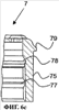 Корпус 7 клапана представлен на фиг.5a-5k. Корпус 7 может крепиться над седлом 6. Клапан удерживается в соединительном устройстве 2 при помощи буртика 27 и предпочтительно при помощи первой канавки 77 или второй канавки 78.