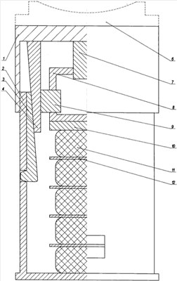 На чертеже представлен фрикционно-полимерный поглощающий аппарат с объемным распорным блоком.