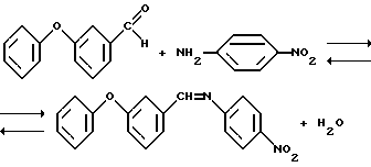 (57) Реферат: Изобретение относится к новому химическому соединению, а именно к N-п-нитрофенил-м-феноксифенилметанимину, который может быть использован в качестве промотора адгезии резины к текстилю. Техническим результатом при использовании предлагаемого модификатора является увеличение прочности связи резины с текстилем. 2 табл. Изобретение относится к новому химическому соединению, а именно к N-п-нитрофенил-м-феноксифенилметанимину, который может быть использован в качестве промотора адгезии резины к текстилю. Известно использование диизоцианата, блокированного меркаптобензтиазолом, в качестве промотора адгезии резины к полиэфирному корду [А.С. СССР N 547459, МКИ C 08 L 9/00, C 06 K 5/43, 1977]. Однако при эксплуатации резиновых изделий при повышенной температуре ввиду склонности применяемого промотора к полимеризации не обеспечивается высокая прочность связи резины с кордом. Известно также использование N-(замещенного оксиметил)-меламина и ароматического спирта с целью повышения адгезии к корду [Патент США N 4038220, МКИ C 08 L 7/00, C 08 L 9/00, 1977]. Однако введение ароматического спирта не улучшает свойства резин ввиду возможности выделения его с поверхности вулканизата при действии высоких температур. Известны близкие по структуре и строению N-фенил-м-феноксифенилметанимин [Патент РФ N 2116999, МКП C 07 C 251/24, C 08 K 5/29, 1998], N-o-гидроксифенил-м-феноксифенилметанимин [Патент РФ N 2117000, МКП C 07 C 251/24, C 08 K 5/29, 1998] , N-п-метоксифенил-м-феноксифенилметанимин [Патент РФ N 2117001, МКП C 07 C 251/24, C 08 K 5/29, 1998]. Однако указанные соединения используют в качестве противостарителей, сочетающих в себе свойства антиозонантов и противоутомителей. Известно применение продуктов частичной конденсации алкилированных двухатомных фенолов вместе с формальдегидом и аминами в качестве модифицирующих добавок для крепления резины к текстильным материалам [А.С. СССР N 384352, МКИ C 08 K 5/04, C 08 K 5/16, 1978]. Однако продукт не имеет постоянного состава, что приводит к расхождению данных по прочности связи резины к текстилю в зависимости от строения и состава. Также при эксплуатации резиновых изделий при повышенной температуре ввиду склонности применяемого промотора к полимеризации не обеспечивается высокая прочность связи резины с кордом. Наиболее близким по структуре и по назначению является гексаметилентетраминрезорцин (резотропин – РУ) (ТУ 6-14-200-76) [Справочник резинщика. -М.: Химия, 1971.- с.608]. Однако при введении указанного модификатора вулканизаты имеют невысокую прочность связи с текстилем. Задачей предлагаемого изобретения является получение нового промотора адгезии, который при введении в резиновую смесь обеспечивает получение резиновых изделий, имеющих высокую прочность связи резины с текстилем. Техническим результатом при использовании предлагаемого промотора является увеличение прочности связи резины с текстилем. Технический результат достигается тем, что в качестве промотора адгезии вулканизации каучуков используют новое соединение N-п-нитрофенил-м-феноксифенилметанимин формулы: ![]() Предлагаемый нами новый N-п-нитрофенил-м-феноксифенилметанимин (НФФМИ) получают при взаимодействии м-феноксибензальдегида с ароматическим амином, а именно п-нитроанилином. Наличие двойной связи углерод-азот > C=N-, а также системы сопряженных связей и электроно-акцепторной группы NO2 увеличивает спосо