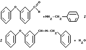 (57) Реферат: Изобретение относится к новому химическому соединению, а именно к N-бензил-м-феноксифенилметанимину, который может быть использован в качестве промотора адгезии резины к текстилю и противоутомителя вулканизации каучуков. Техническим результатом при использовании предлагаемого модификатора является увеличение прочности связи резины с текстилем, а также износостойкости вулканизатов. 2 табл. Изобретение относится к новому химическому соединению, а именно к N-бензил-м-феноксифенилметанимину, который может быть использован в качестве промотора адгезии резины к текстилю и противоутомителя вулканизации каучуков. Известно использование диизоцианата, блокированного меркаптобензтиазолом, в качестве промотора адгезии резины к полиэфирному корду [А.C. CCCH N 547459, МКИ C 08 L 9/00, C 08 K 5/43, 1977]. Однако при эксплуатации резиновых изделий при повышенной температуре ввиду склонности применяемого промотора к полимеризации не обеспечивается высокая прочность связи резины с кордом. Известен также модификатор на основе резотропина [А.С. СССР N 697532, МКИ C 08 L 9/00, C 08 K 5/16, C 08 K 9/04, 1979]. Однако для улучшения теплостойкости и прочностных свойств он дополнительно содержит углеводородный воск и минеральное масло в больших количествах, что приводит к получению вулканизаторов, не обладающих высокой изностойкостью. Известно также использование N-(замещенного оксиметил)-меламина и ароматического спирта с целью повышения адгезии к корду [Патент США N 4038220, МКИ C 08 L 7/00, C 08 L 9/00, 1977]. Однако введение ароматического спирта не улучшает свойства резины ввиду возможности выделения его с поверхности вулканизатора при действии высоких температур. Известны близкие по структуре и строению N-фенил-м-феноксифенилметанимин [Патент РФ N 2116999, МКИ C 07 C 251/24, C 08 K 5/29, 1996], N-o-гидроксифенил-м-феноксифенилметанимин [Патент РФ N 2117000, МКИ C 07 C 251/24, C 08 K 5/29, 1998] , N-n-метоксифенил-м-феноксифенилметанимин [Патент РФ N 2117001, МКИ C 07 C 251/24, C 08 K 5/29, 1998]. Однако указанные соединения используют в качестве противостарителей, сочетающих в себе свойства антиозонантов и противоутомителей. Известно применение продуктов частичной конденсации алкилированных двухатомных фенолов вместе с формальдегидом и аминами в качестве модифицированных добавок для крепления резины к текстильным материалам [А.C. СССР N 384352, МКИ C 08 K 5/04, C 08 K 5/16, 1978]. Однако продукт не имеет постоянного состава, что приводит к расхождению данных по прочности связи резины к текстилю в зависимости от строения и состава. Также при эксплуатации резиновых изделий при повышенной температуре ввиду склонности применяемого промотора к полимеризации не обеспечивается высокая прочность связи резины с кордом. Наиболее близким по структуре и по назначению является гесаметилентетраминрезорцин (резотропин – РУ) (ТУ 6-14-200-76) [Справочник резинщика. -М.: Химия, 1971. -с. 608]. Однако при введении указанного модификатора вулканизаты имеют невысокую прочность связи с текстилем. Задачей предлагаемого изобретения является получение нового промотора адгезии, который при введении в резиновую смесь обеспечивает получение резиновых изделий, имеющих высокую прочность связи резины с текстилем и высокую износостойкость вулканизатов. Техническим результатом при использовании предлагаемого промотора является увеличение прочности связи резины с текстилем, 