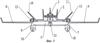 Самолет подъема 1 (фиг.2, 3, 4, 5) содержит центроплан-крыло малого удлинения 5 с концевыми продольными бортотсеками 6, 7, двумя консолями крыла 8, 9, кили-стабилизаторы 10, 11, маршевые двигатели 12, 13, подъемные двигатели 14, размещенные сверху бортотсеков 6, 7, с воздухозаборниками 15, снабженные раздвоенными выхлопными трактами 16 с управляемыми поворотными головками 17, выпусное поплавковое взлетно-посадочное устройство (ПВПУ) – шасси 18 снизу бортотсеков 6, 7, передние 19 и задние 20 нижние отклоняемые щитки на крыле-центроплане 5. Кабина экипажа 21 вписана в крыло-центроплан 5 с незначительным выступом вперед.
