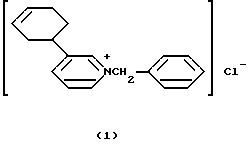 (57) Реферат: Изобретение относится к новому химическому соединению 3-(циклогекс-3-енил)пиридинийбензилхлориду, который может быть использован в качестве ингибитора коррозии стали в минерализованных средах в нефтяной промышленности или в системах оборотного водоснабжения. 1 табл. Изобретение относится к новый химическим соединениям, конкретно 3-(циклогекс-3-енил)пиридинийбензилхлориду общей формулы (1), который может быть использован в качестве ингибитора коррозии стали в минерализованных агрессивных средах, например, в нефтяной промышленности или в системах оборотного водоснабжения ![]() В литературе отсутствуют сведения о синтезе и свойствах 3-(циклогекс-3-енил)пиридинийбензилхлорида, указанное соединение получено впервые. Известно большое количество ингибиторов коррозии стали, полученных на базе полиалкилпиридинов, например, реагент И-1-В (ТУ 103238-74), являющийся смесью модифицированных полиалкилпиридинов или реагент ИКИХП-2, являющийся продуктом конденсации хлорметилированных продуктов с пиридином [Г.З.Ибрагимов и др. Применение химических реагентов для интенсификации добычи нефти. М.: Недра, 1991 г., с. 25]. Известные ингибиторы предназначены, главным образом, для предотвращения коррозии стали в соляной кислоте. Кроме того, они обладают чрезвычайно неприятным запахом, что требует специальных мероприятий по охране труда и экологии. Наиболее близким по структуре и свойствам к заявляемому объекту является реагент Катапин-А [там же], полученный из алкилбензила хлористого и пиридина. Он является одним из лучших ингибиторов соляно-кислотной коррозии, но недостаточно эффективен в минерализованных средах с высоким содержанием кислорода. Целью изобретения является выявление новых производных пиридина, эффективно снижающих коррозию стали в минерализованных агрессивных средах с высоким содержанием кислорода. Поставленная цель достигается синтезом 3-(циклогекс-3-енил)пиридинийбензилхлорида формулы (1). Предлагаемое соединение получают смешиванием эквимольных количеств 3-(циклогекс-3-енил)пиридина с хлористым бензилом при 120-130oC в течение 4-6 ч. Получают индивидуальный 3-(циклогекс-3-енил)пиридинийбензилхлорид (1) с выходом 95-99% по схеме: ![]() Синтез 3-(циклогекс-3-енил)пиридинийбензилхлорида (1) иллюстрируется примером 1. ПРИМЕР 1. В стеклянный реактор, снабженный механической мешалкой, термопарой, обогревательной рубашкой и воронкой с противодавлением, загружают 0.1 моль хлористого бензила и 0.1 моль 3-(циклогекс-3-енил)пиридина, при 125oC перемешивают 5 ч. Получают 3-(циклогекс-3-енил)пиридинийбензилхлорид (1) с выходом 96%. Данные элементного анализа (1). Найдено, %: C 75.31; H 7.12; N 4.83; Cl 12.47. C18H20NCl. Вычислено, %: C 75.66; H 7.01; N 4.90; Cl 12.43. Полученная смесь при температуре выше 140oC разлагается, плохо растворима в спиртах, кетонах, нерастворима в углеводородах, хорошо растворима в воде. Испытания защитного действия 3-(циклогекс-3-енил)пиридинийбензилхлорида (1) в качестве ингибитора коррозии проводили в лабораторных условиях по ОСТ 39-099-79 “Ингибиторы коррозии. Метод оценки эффективности защитного действия ингибиторов коррозии в нефтепромысловых сточных водах”, ВНИИСПТнефть, 1980. В качестве коррозионных сред использовали модель сточной воды (МСВ) следующего состава (d = 1.1 г/см3): CaSO4 2H2O – 1.4 г/л; CaCl2 2H2O – 2.3 г/л; NaCl – 144 г/л; MgCl2 6H2O – 2.2 г/л.