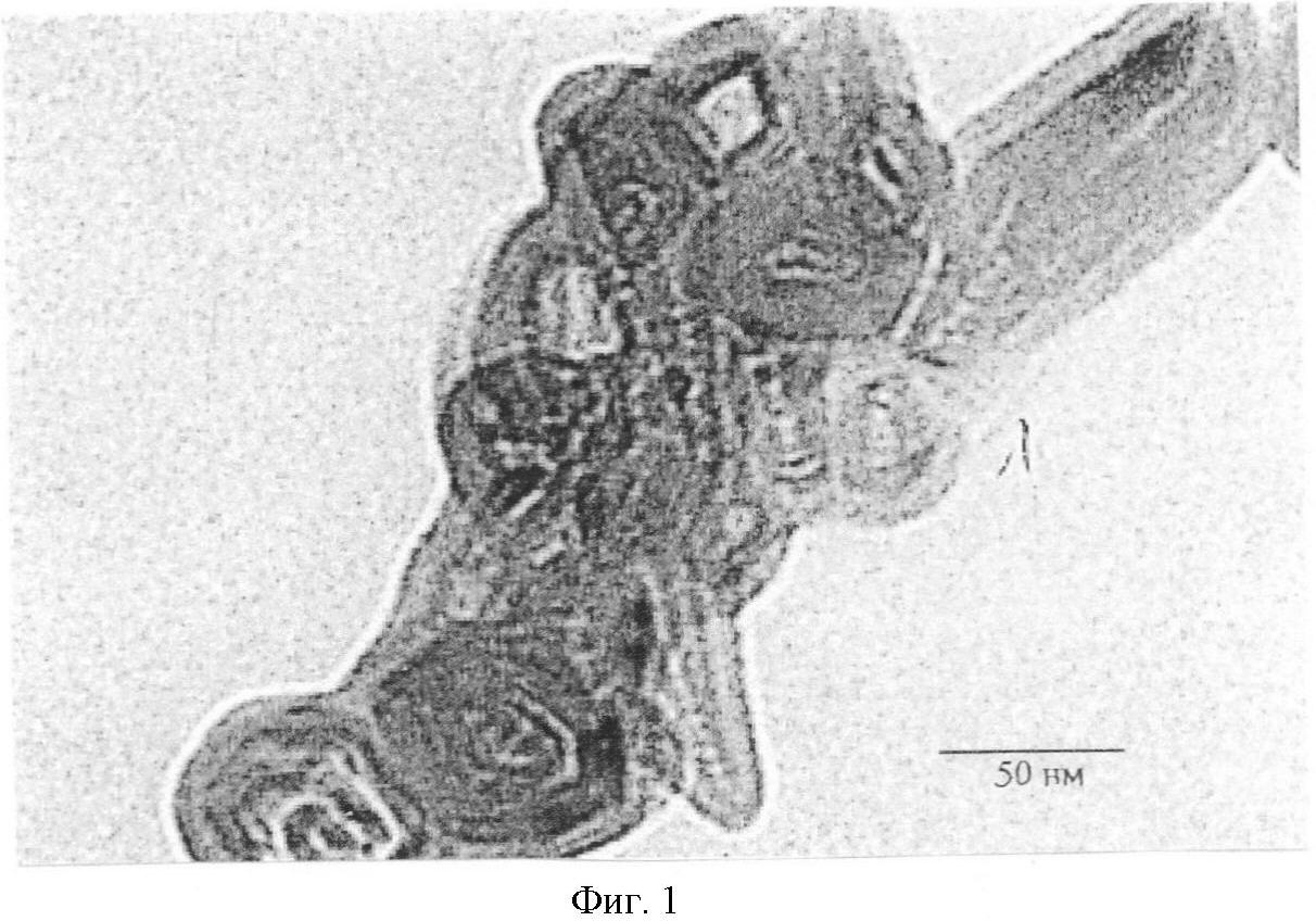 На Фиг.1 представлено изображение многослойных углеродных наночастиц фуллероидного типа, агломерированных в виде связки торов.
