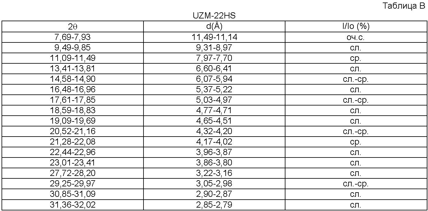 и является термически стабильным до температуры, по меньшей мере, 400°С; и UZM-22HS имеет трехмерную каркасную структуру, состоящую, по меньшей мере, из тетраэдрических единиц SiO2, и эмпирический состав в расчете на безводную основу: