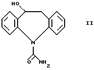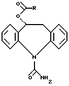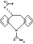 Пример 5-17Применяя вышеописанную методику и сходные процессы, известные в современном уровне техники, но используя подходящие кислые галогениды, получают следующие соединения: 10-бензоилокси-10,11-дигидро-5H-дибенз/b,f/азепин-5- карбоксамид 10-(4-метоксибензоилокси)-10,11-дигидро-5H-дибенз/b, f/азепин-5- карбоксамид 10-(4-нитробензоилокси)- 10,11-дигидро-5H-дибенз/b, f/азепин-5- карбоксамид 10-(4-хлорбензоилокси)-10,11-дигидро-5H-дибенз/b,f/азепин-5- карбоксамид 10-этоксикарбонилокси-10,11-дигидро-5H-дибенз/b,f/азепин-5- карбоксамид 10-(2-ацетоксибензоилокси)-10,11-дигидро-5H-дибенз/b,f/азепин-5- карбоксамид 10-пивалоилокси-10,11-дигидро-5H-дибенз/b,f/азепин-5-карбоксамид 10-стеароилокси-10,11-дигидро-5H-дибенз/b,f/азепин-5- карбоксамид 10-фенилацетокси-10,11-дигидро-5H-дибенз/b,f/азепин-5-карбоксамид 10-хлорацетокси-10,11-дигидро-5H-дибенз/b,f/азепин-5-карбоксамид 10-бромацетокси-10,11-дигидро-5H-дибенз/b,f/азепин-5-карбоксамид 10-(2-хлорпропионилокси)-10,11-дигидро-5H-дибенз/b, f/азепин-5-карбоксамид Пример 18 10-никотиноилокси-10,11-дигидро-5H-дибенз/b,f/азепин-5- карбоксамид К перемешиваемой суспензии 0,254 г (1 ммоль) 10-гидрокси-10,11-дигидро-5H-дибенз/b, f/aзeпин-5-кapбoкcaмидa и 0,130 г (1 ммоль) никотиновой кислоты в 5 мл тетрагидрофурана добавляют 0,230 г (1,1 ммоль) дициклогексилкарбодиимида и 0,02 г (0,2 ммоль) 4-диметиламинопиридина и смесь перемешивают при 20oC в течение шести часов. Осажденную мочевину удаляют фильтрацией и фильтрат испаряют при пониженном давлении. Остаток хроматографируют на силикагеле 0,5% смесью метанол-дихлорметан. Хроматографически гомогенные фракции объединяют, растворители подвергают перегонке при пониженном давлении и остаток кристаллизуют из ацетонитрила, получая ожидаемое соединение (точка плавления 196-198oC). Примеры 19-23 Применяя вышеописанную методику и сходные процессы, известные в современном уровне техники, но используя подходящие кислоты, получают следующие соединения: 10-[(2-пропил)пентаноилокси] -10,11-дигидро-5H-дибенз/b,f/азепин-5- карбоксамид 10-[(2-этил)гексаноилокси] -10,11-дигидро-5H-дибенз/b,f/азепин-5- карбоксамид 10-циклогексаноилокси-10,11-дигидро-5H-дибенз/b,f/азепин-5-карбоксамид 10-(4-метоксифенил)ацетокси-10,11-дигидро-5H-дибенз/b,f/азепин-5- карбоксамид 10-(4-нитрофенил)ацетокси-10,11-дигидро-5H-дибенз/b, f/азепин-5- карбоксамид Пример 24 10-(4-аминобутаноилокси)-10,11-дигидро-5H-дибенз/b, f/азепин-5- карбоксамид Раствор изобутил хлорформиата (0,144 г, 1,05 ммоль) в 2 мл тетрагидрофурана медленно добавляют к раствору 0,204 г (1 ммоль) N-третбутоксикарбонил-гамма-аминомасляной кислоты и 0,106 г (1,05 ммоль) триэтиламина в 3 мл тетрагидрофурана. Реакционную смесь перемешивают в течение 1 часа при -5oC, затем фильтруют и фильтрат медленно добавляют к суспензии 0,254 г (1 ммоль) 10-гидрокси-10,11-дигидро-5H- дибенз/b, f/азепин-5-карбоксамида в 5 мл тетрагидрофурана и 0,09 г (1,1 ммоль) пиридина. Реакционную смесь перемешивают в течение 4 часов при 25oC, затем выливают в 50 мл холодного 5% раствора KHSO4 и экстрагируют дихлорметаном. Органический слой экстрагируют насыщенным водным раствором NaHCO3 и насыщенным солевым раствором, высушивают сульфатом натрия, летучие соединения удаляют дистилляцией при пониженном давлении. Остаток хроматографируют на силикагеле 0,5% метанолом в дихлорметане. Гомогенные фракции объединяют и растворитель выпаривают под вакуумом. Оставшееся защищенное производное растворяют в 10 мл дихлорметана и 2 мл трифторуксусной кислоты. Реакционную сме