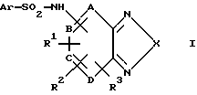 (57) Реферат: Настоящее изобретение относится к производным сульфонамидов общей формулы I, где -А=В-С=Д- обозначает -СН=СН-СН=СН-группу, в которой один СН может быть заменен на N, Аr обозначает фенил или нафтил, незамещенный или одно-, двух- или трехкратно замещенные с помощью Н, Hal, Q, Ph или NR4R5, R1, R2, R3 каждый независимо друг от друга отсутствует или обозначает Н, Hal, или Q, R4, R5 каждый независимо друг от друга обозначает Н или Q, Q обозначает алкил с 1-6 С-атомами, Ph обозначает фенил, Х обозначает О или S, Hal обозначает F, Cl, Br или I, n обозначает 1, 2 или 3, а также их соли. Соединения обладают антагонистическими по отношению к рецептору энзотелина свойствами, что позволяет их применять для лечения таких заболеваний, как гипертония, сердечная недостаточность, инсульт. Описан также способ их получения и фармацевтическая композиция на основе производных сульфонамидов. 3 с. и 2 з.п. ф-лы, 1 табл.