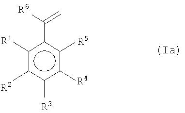 причем указанные массовые проценты предпочтительно дополняют до 100,0 мас.%. Причем соединения А), В), С) и D) естественно отличаются друг от друга, в частности, соединения А) и В) не включают никакого сшивающего мономера С). Остатки R1-R5 означают независимо друг от друга водород, галоген, в частности фтор, хлор или бром, или алкильную группу, имеющую от 1 до 6 атомов углерода, предпочтительно водород. Остаток R6 означает водород или алкильную группу, имеющую от 1 до 6 атомов углерода, предпочтительно водород. Особенно подходящими алкильными группами, имеющими от 1 до 6 атомов углерода, являются группы метила, этила, н-пропила, изо-пропила, н-бутила, втор-бутила, трет-бутила, н-пентила, н-гексила, а также группы циклопентила и циклогексила. Таким образом, стироловые повторные элементы общей формулы (I) включают повторяющиеся структурные элементы, которые получают путем полимеризации мономеров общей формулы (Ia).