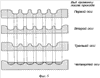 на Фиг.3 – схема расположения линий проминки на полосе отвода: – под основание автозимника (для автозимников – I, II и III категорий) и для сбора снега;