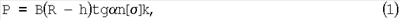 P=B·(R-h)·tg ·n[ ]·k, H;