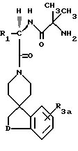 Пример 2N-/1(R)-/(2′, 3′-Дихлор-1-оксоспиро/пиперидин-4,4′- (1H)-изохинолин/-1’ил)карбонил/-2-(индол-3-ил)этил/-2- амино-2-метилпропанамидгидрохлорид Стадия A: /3′,4′-Дигидро-1-оксоспиро/пиперидин- 4,4′(1H)-изохинолин/ Указанное в заглавии соединение (11,3 мг, 0,036 ммоль) получают из промежуточного соединения примера 1 (стадия D) с низким значением RF (16,0 мг, 0,051 ммоль) по способу примера 13 (стадия D). 1H ЯМР (200 МГц, CDCl3): 8,12 (дд, 1H), 7,60-7,52 (м, 1H), 7,45 – 7,35 (м, 2H), 6,95 (шир.с, 1H), 4,56 – 4,43 (м, 1H), 4,03-3,96 (м, 1H), 3,64-3,63 (м, 2H), 3,49-3,35 (м, 2H), 3,11 (дт, 1H), 2,20-1,80 (м, 4H).