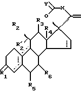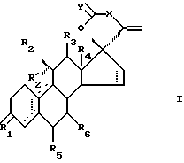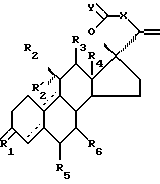 ![]() где R1 является 0, (Н,Н), (Н,OR) или NOR; R выбран из Н, (1-6С) алкила или (1-6С)ацила; R2 является Н, (1-6С)алкилом, необязательно замещенным галогеном, (2-6С)алкенилом, необязательно замещенным галогеном, (2-6С)алкинилом, необязательно замещенным галогеном, или галогеном; R’2 является Н, или R’2 вместе с R2 является (1-6С)алкилиденовой группой или (2-6С)алкенилиденовой группой; или R’2 вместе с R3 образуют связь; R3 является Н; R4 является (1-6С)алкилом; один из R5 и R6 является водородом, а другой является водородом или (1-6С)алкилом; X является группой (СН2)n или (Cn-H2n-2), где n равно 2 или 3, и которая необязательно замещена гидроксилом, галогеном, (1-6С)алкилом, (1-6С)ацилом, фенил(1-6С)алкилом, фенильная группа которого может быть замещена галогеном; Y является О или (Н,ОН); пунктирные линии указывают на необязательные связи, по крайней мере одна из связей 4 – 5, 5 – 10 и 9 – 10 является двойной связью. 2. Стероид по п.1, отличающийся тем, что R1 является О; R4 является метилом; У является О и n равно 2. 3. Стероид по п. 2, отличающийся тем, что R1 является О; R2 является (1-6С)алкилом или (2-6С)алкинилом; R’2 и R3 является Н; R4 является метилом; R5 и R6 является водородом; X является (CH2)2; Y является О и пунктирная линия в D-кольце не является связью, а другая прерывистая линия является 4 – 5 связью. 4. Стероид по п. 1, отличающийся тем, что он является -лактоном (11 , 17 ) -11-этил-17-гидрокси-3-оксо-19-норхола-4,20-диен-24-овой кислоты или -лактоном(11 , 17 ) -17-гидрокси-3-оксо-11-(1-пропинил)-19-норхола-4,20-диен-24-овой кислоты.