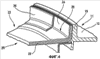 На противоположной стороне от корпуса 11 вентилятора фланец 24 присоединен к цилиндрической стенке 23 посредством выкружки 25 (см. также фиг.4). Кроме того, упомянутый фланец 24 и выкружка 25 упрочнены композиционным материалом так, что их толщина Е превышает толщину е цилиндрической стенки 23.