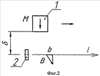 Устройство для реализации предлагаемого способа (фиг.1, 2) состоит из источника магнитного поля – постоянного магнита 1 с плоскостью симметрии магнитного поля (плоскостью, проходящей через ось симметрии магнитного поля), совпадающей с направлением движения объекта, и измерителя (датчика) 2 магнитного поля (например, датчика Холла), с осью чувствительности, лежащей в указанной плоскости. При цилиндрической форме магнита с осевой намагниченностью плоскости симметрии магнитного поля проходят через ось цилиндра, а при выполнении магнита в форме прямоугольного параллелепипеда (в частности, куба) такие плоскости проходят через центр параллелепипеда параллельно граням (в кубе – также по ребрам), совпадающим по направлению с намагниченностью магнита. Магнит располагается на движущемся объекте, а датчик – на неподвижном объекте (объекты на фигурах не показаны), направление перемещения магнита относительно датчика показано стрелкой. Намагниченность М постоянного магнита 1 в обоих случаях перпендикулярна направлению движения, а ось чувствительности датчика 2 в одном случае ориентирована поперек направления движения (фиг.1), в другом случае – вдоль направления движения объекта (фиг.2). Возможно также направление намагниченности магнита, совпадающее с направлением движения. Кроме того, магнит может располагаться на неподвижном, а датчик – на подвижном объекте.