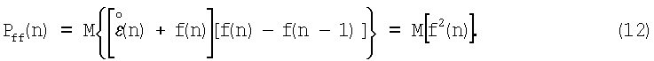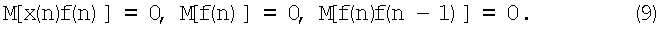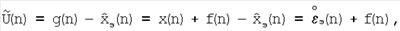 поступающий на первый вход блока, содержит информацию об ошибках экстраполяции и ошибках измерения f(n). Так как ошибка оценки ортогональна наблюдениям [8], то это утверждение справедливо и в отношении ошибок экстраполяции. Поэтому с учетом (9) имеем