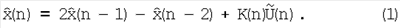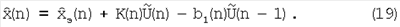 Первые два члена в правой части выражения (1) являются сигналом , K(n) – весовой коэффициент. Сигнал формируется блоком 6 экстраполяции из условия, что входное воздействие на систему имеет вид: