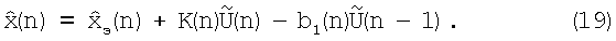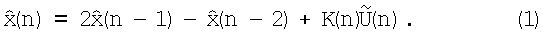 Присутствие динамической ошибки (28) в сигнале невязки утяжеляет значение Рэ(n) в выражениях (10) и (13). Следовательно, величина К(n), определяемая в соответствии с (8), также возрастает, и система самонастраивается к изменению модели входного воздействия.