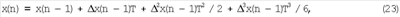 Выражение (22) можно представить в дискретном времени, используя соотношения: t=nT n, t-t0=Т, v х, а 2x, b 3x.