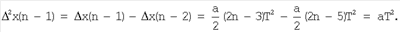 Найдем вторую разность от задающего воздействия x(t)=at2/2, положив
