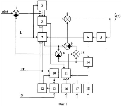 После остановки счетчика 10 считывание коэффициентов a1(n) из элементов 16-18 прекращается, и сигналы вида (18) и (19) формироваться не будут.