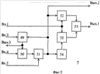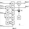 то на втором выходе блока 7 (см. фиг.5), являющемся выходом триггера 51, присутствует уровень логического “0”. Этот сигнал поступает на четвертый вход блока 3 (см. фиг.4) и инвертируется блоком 39. Сигнал логической “1” с выхода блока 39 разрешает прохождение считанного из блока 40 и появившегося на выходе мультиплексора 45 значения К(n) через блок 44.