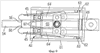 Как, в частности, следует из Фигуры 1, средство 16 для смещения контактного блока 15 содержит две проходящие перпендикулярно спереди в выдвижном блоке 1 зубчатые рейки 20, которые являются сдвигаемыми в сторону через шестерню 21. В шестерню 21 при этом через переднюю сторону можно воздействовать ключом на месте стрелки 22. Через угловые отклонения 23 рейки 24 движутся вперед или, соответственно, назад. Связанный с рейками 24 поперечный толкатель 25 движется тогда также сзади вперед и наоборот.