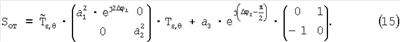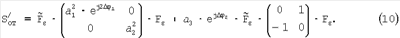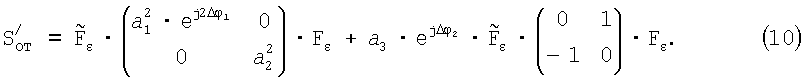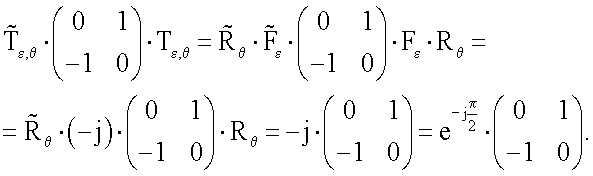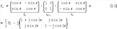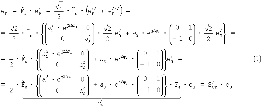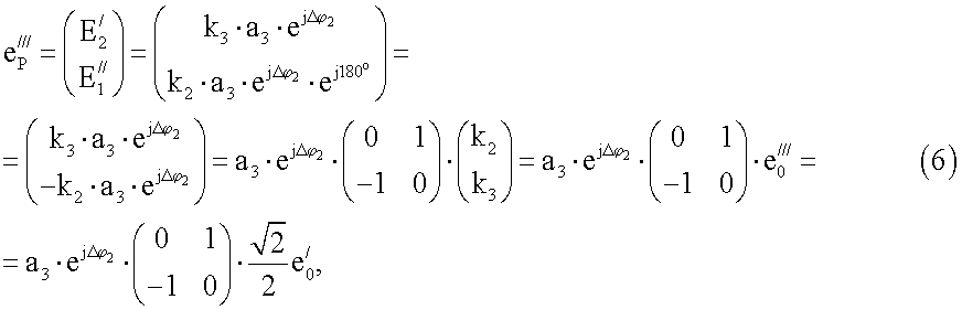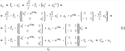 Знак ~ означает операцию транспонирования оператора, либо вектора (в данном случае транспонирование учитывает изменение направления движения волны через четвертьволновую диэлектрическую пластинку 3, которая при прямом прохождении имеет оператор пропускания F (1)).