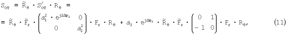 где – матрица обратного рассеяния заявляемого отражателя, представленная в системе координат X0Y, образованной осями плеч поляризационного разделителя 6.
