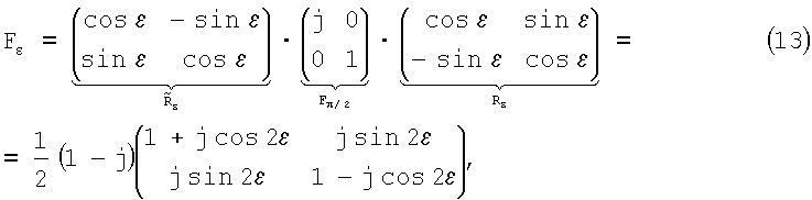 Оператор F пропускания четвертьволновой диэлектрической пластинки 3, ориентированной под углом относительно системы координат X0Y, имеет вид: