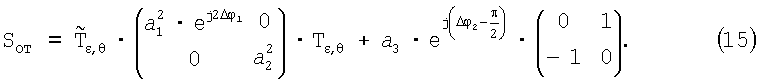 Выпишем выражение для матрицы обратного рассеяния отражателя SOT в виде суммы двух операторов: